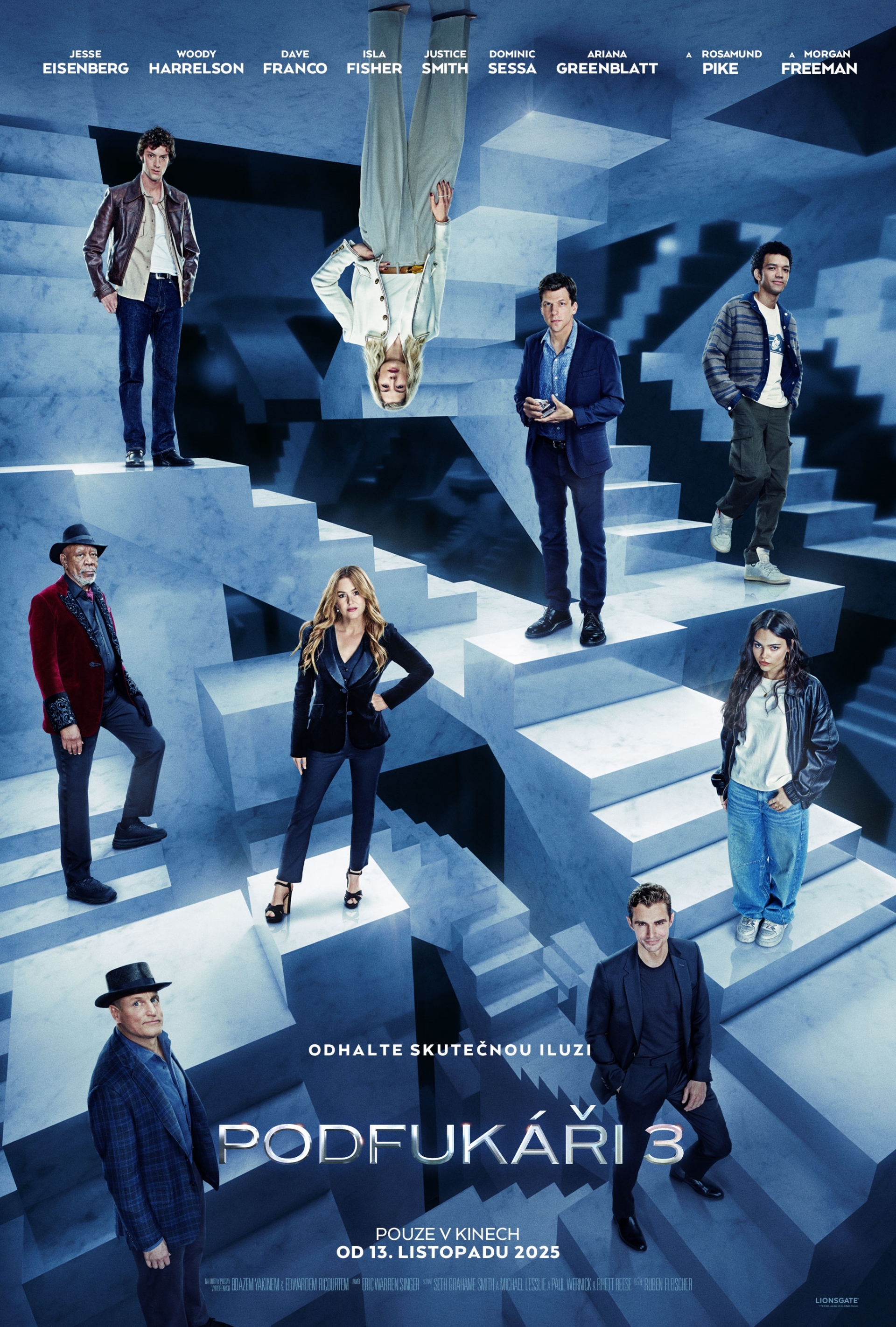 Jesse Eisenberg, Morgan Freeman, Rosamund Pike, Woody Harrelson, Isla Fisher, Mark Ruffalo, Dave Franco, Ariana Greenblatt, Justice Smith, Dominic SessaOdhalte skutečnou iluzi